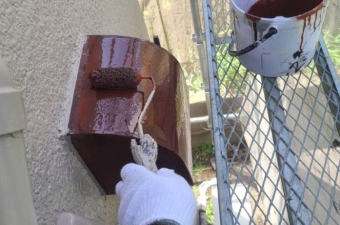 🔧 換気フード(鉄部)のケレン+錆止め塗装|N様邸 神奈川県春日部市 N様邸にて、外壁付帯部の換気フード(鉄部)を対象に、ケレン(下地処理)〜錆止め塗...