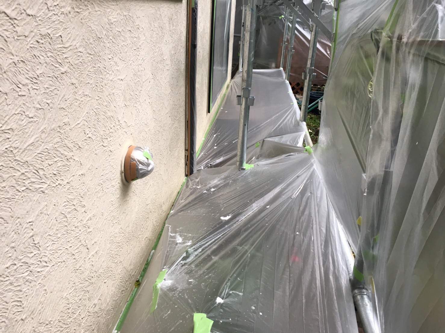 外壁の下塗り作業中です|さいたま市中央区のA様邸