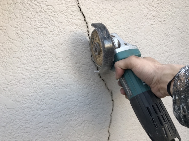 サンダーでクラックをこじあけ