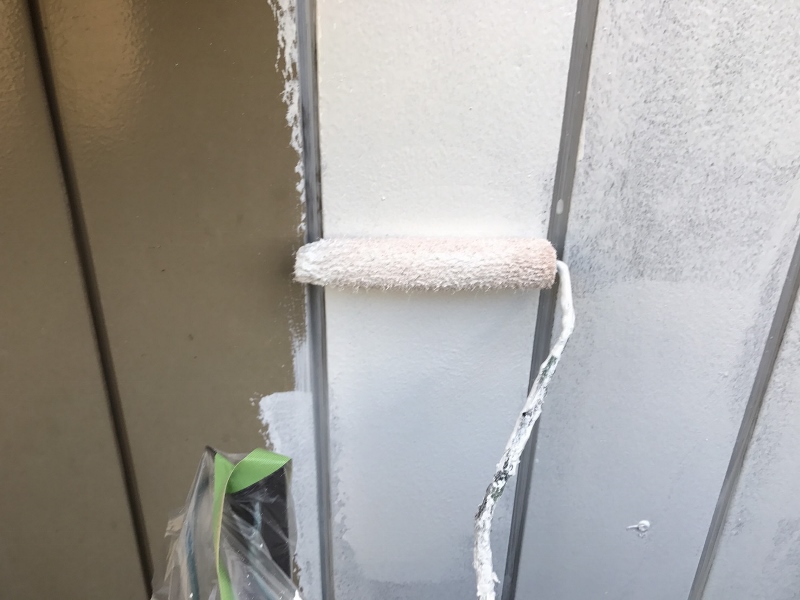 【埼玉県越谷市】外壁中塗り塗装(上塗り1回目)|塗膜の厚みを確保する重要な工程