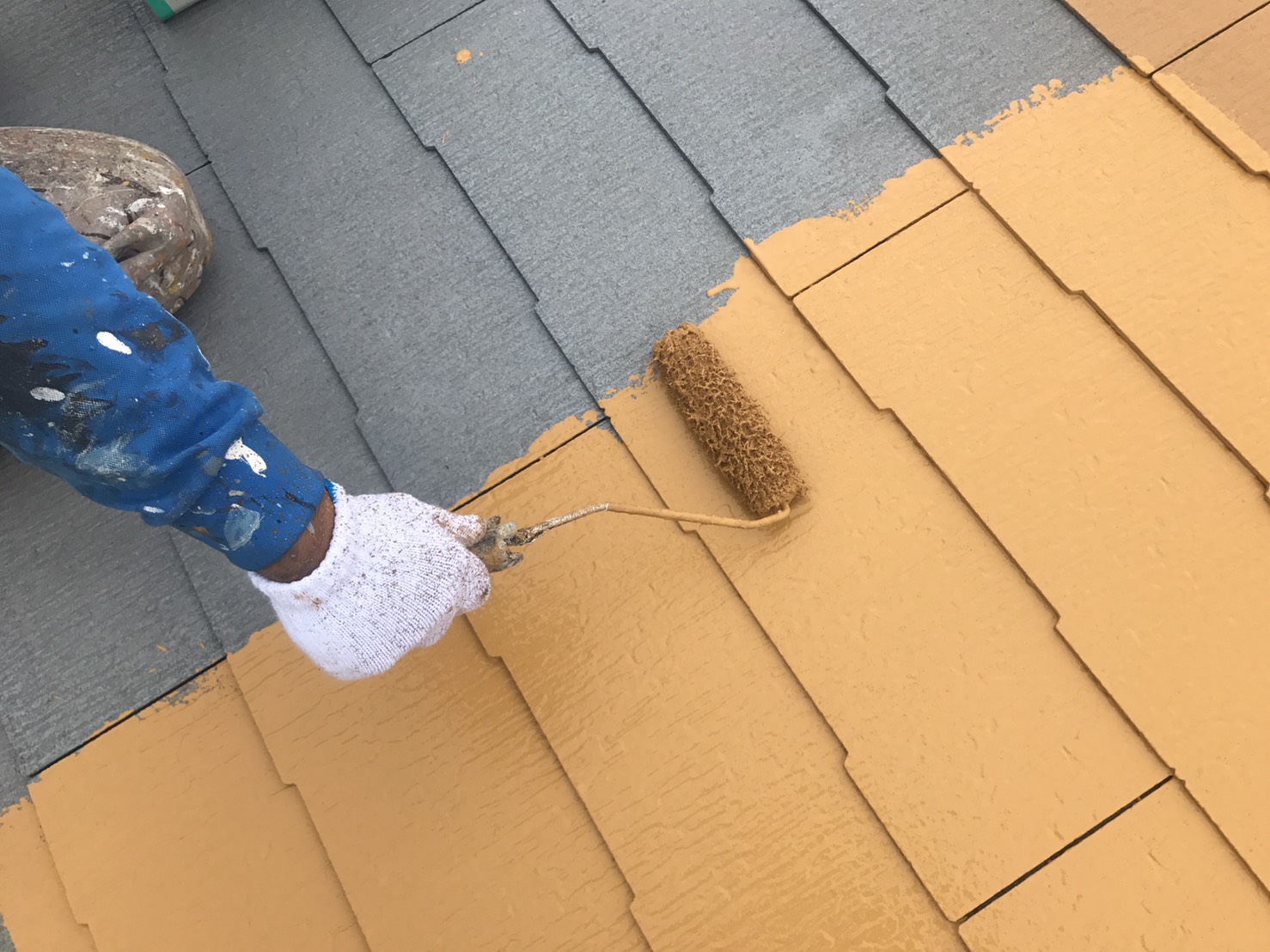 屋根の塗装(上塗り1回目)|さいたま市見沼区のAアパート