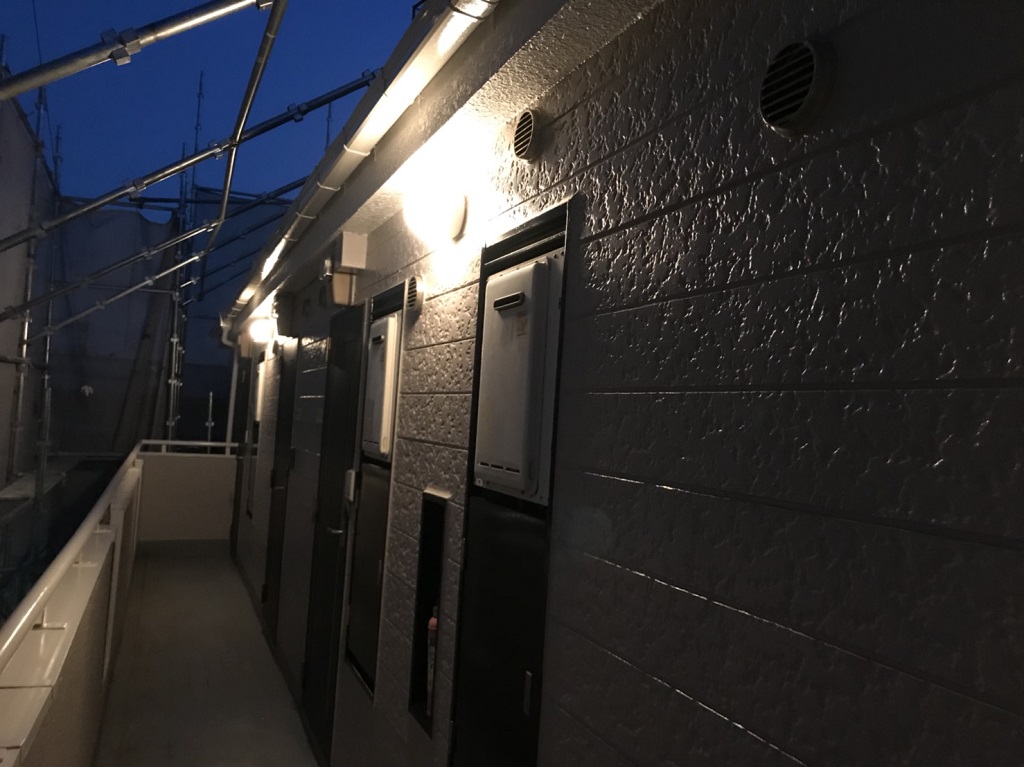 凛翔塗建ではアパートの電球交換は必ずサービスでやっていて、暗くなってからどのような明るさかを確認してから取り付けております!