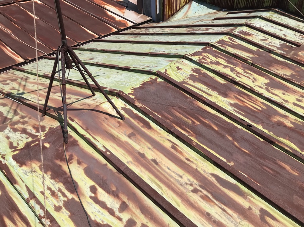 実際に調査をさせて頂くと、稀に見る劣化具合でした。広さとしては20坪だったんですが、屋根のトタンでボロボロ・・。