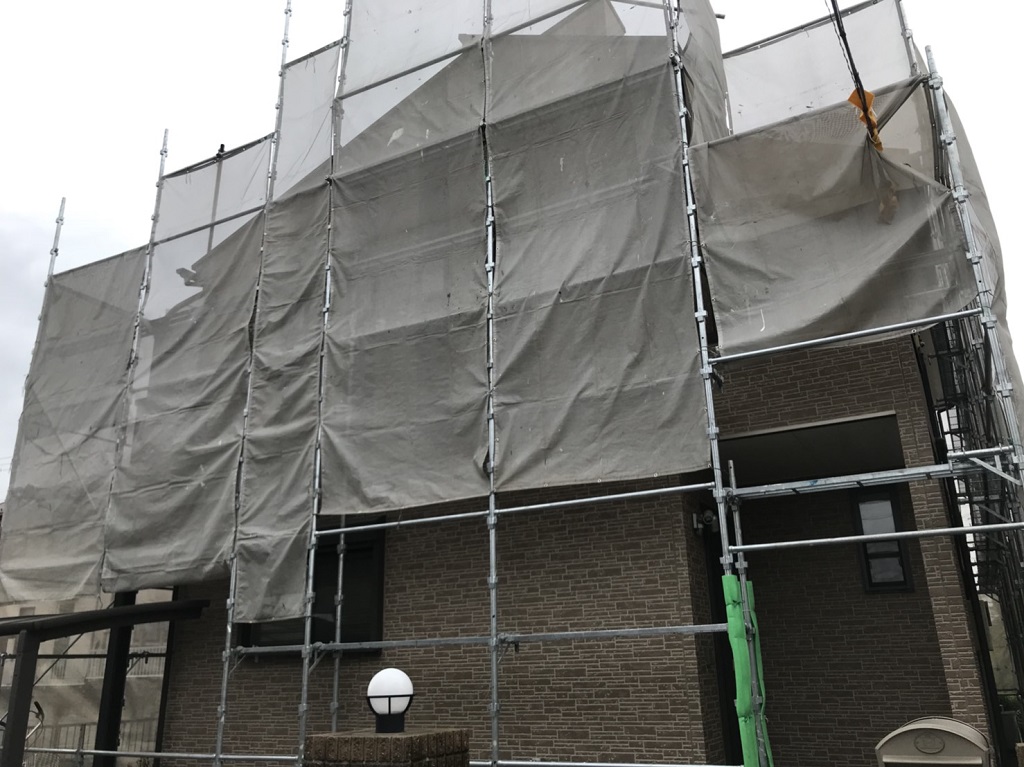 仮設足場の組み立て作業|埼玉県蓮田市のH様邸にて塗り替えリフォーム