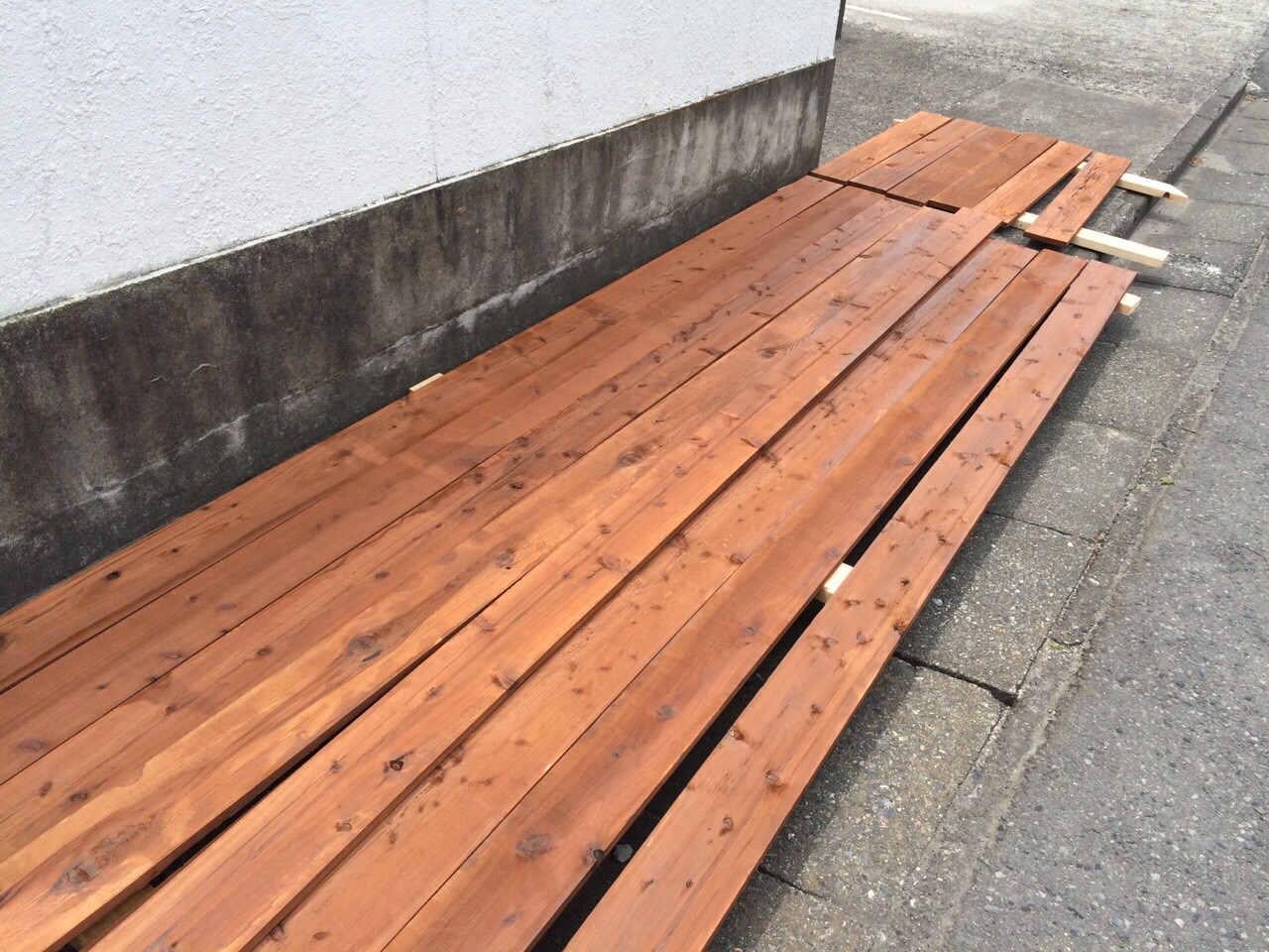 こんなに大量の木材を塗ったのは初めてで新鮮。