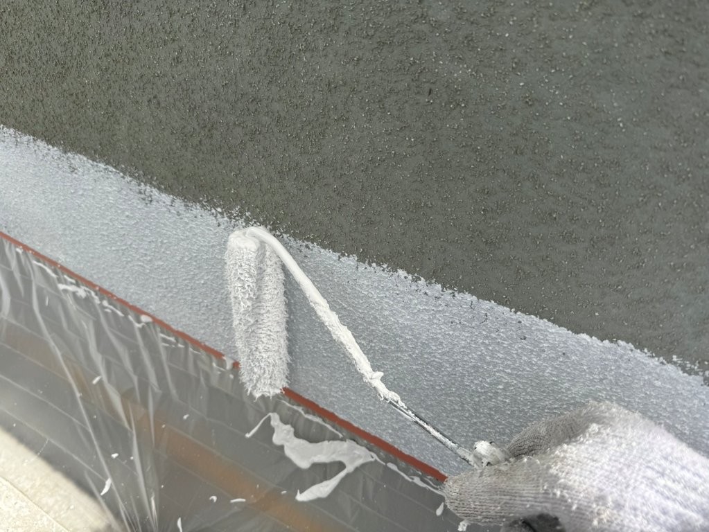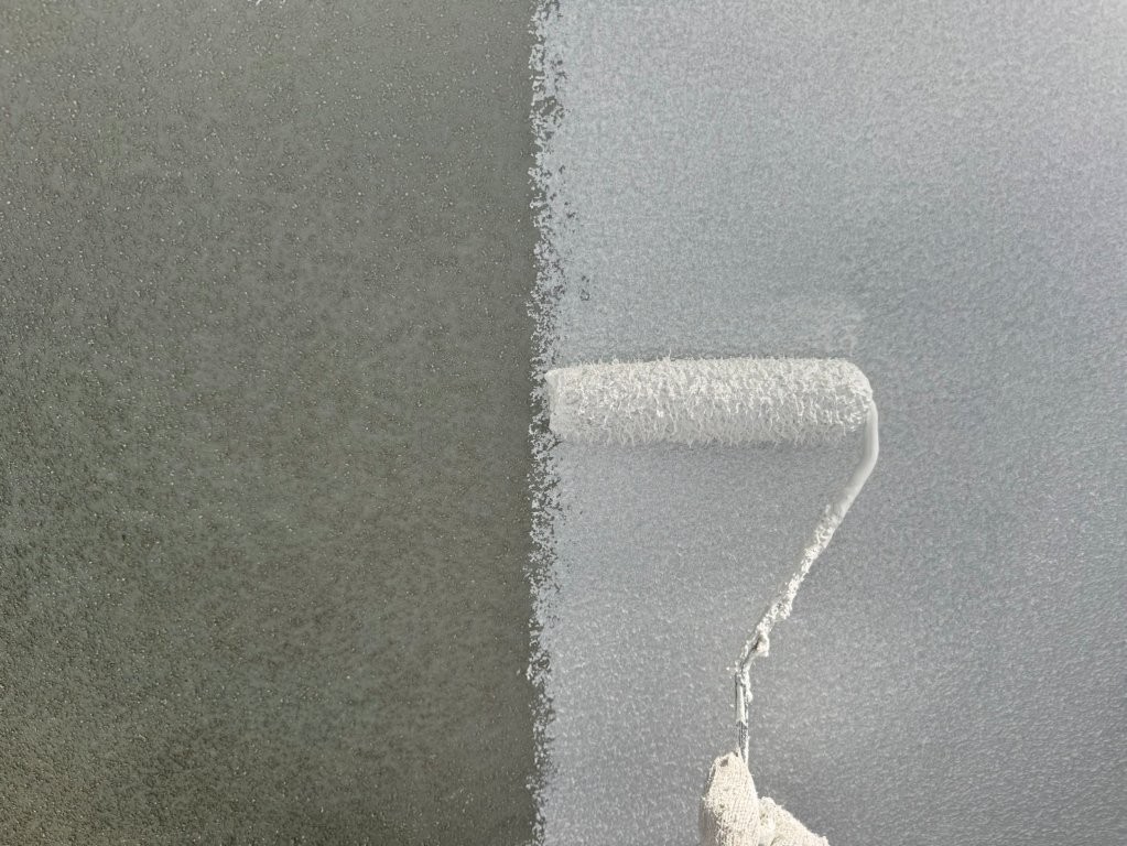 写真ではローラーで白い材料を塗布している様子が写っていますが、これは単に色を変える作業ではありません。