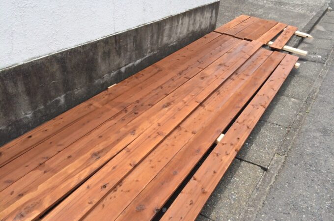 今日は群馬県渋川市にて、ウッドデッキ作成の現場です。 塗装をしたら、大工さんが組み立てる流れ作業なのですが、大工さんが3名での作業のだっ...