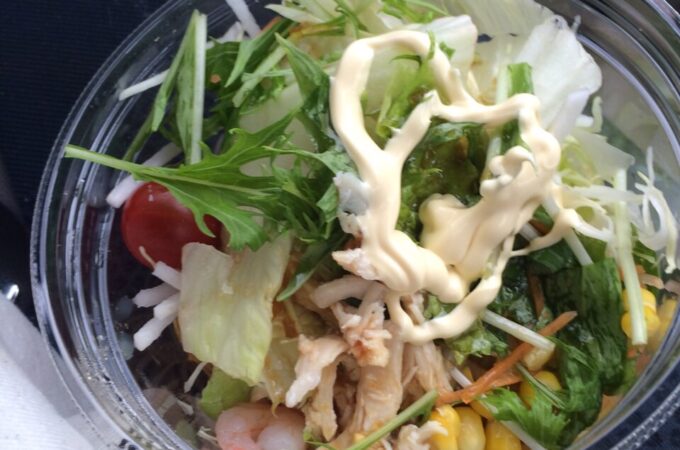 初めてコンビニのサラダ! これで360円です。少し高い気がするなぁ。笑ダイエットってやはりお金かかりますね。ただ、すごい美味しいです!